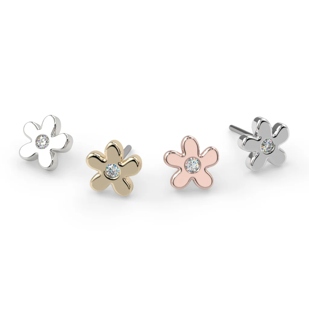 Whether you're a floral fanatic or simply love a hint of whimsy in your jewelry stack, this end brings the perfect balance of cute and refined. The sculpted petals offer soft dimension, while the sparkling center catches the light like morning dew.