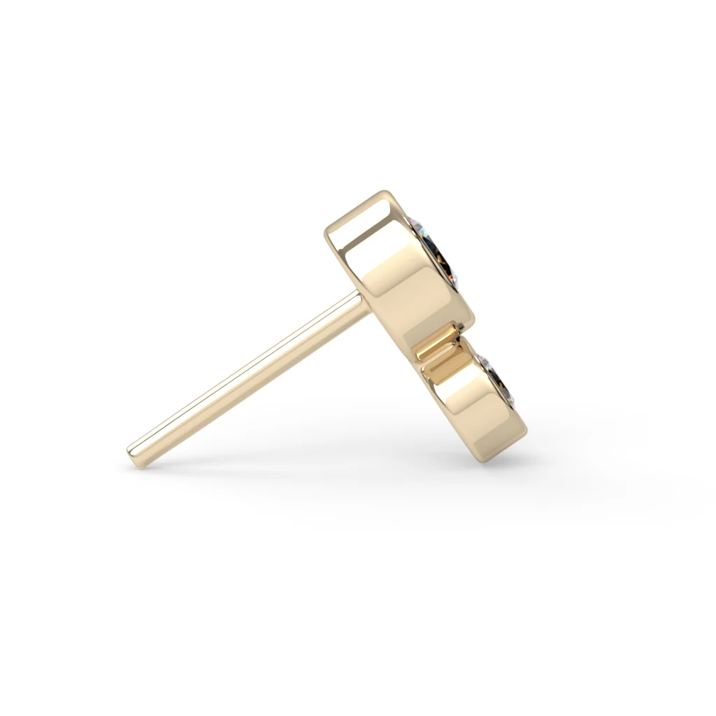 - Double Bezel-Set Design: Our end showcases two bezel-set gemstones stacked on top of each other, adding depth and dimension to your piercing. The bezel settings securely hold the gemstones in place while highlighting their brilliance and sparkle.