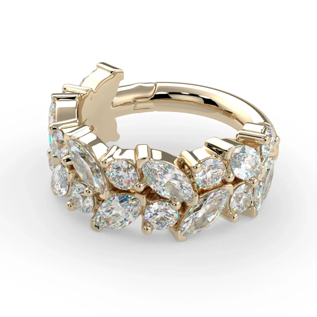 The stunning Ivy clicker is a harmonious blend of botanical elegance and modern craftsmanship. This exquisite clicker features a symmetrical, side-set arrangement, creating a radiant ivy-inspired motif that captures light from every angle.