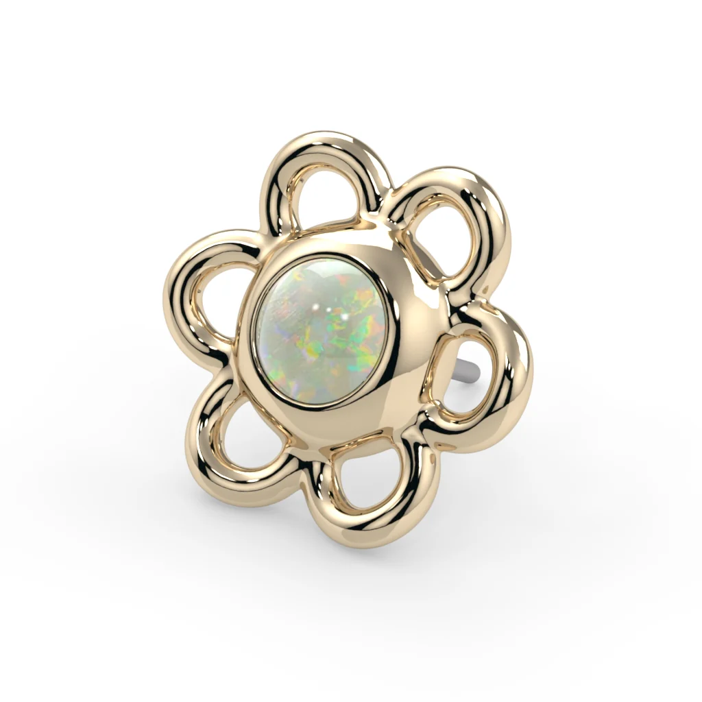 For the floral enthusiast who loves a touch of softness and sparkle, the Lila Flower End is a timeless tribute to nature’s quiet beauty. With gently sculpted petals and a luminous 2mm cabochon center, this piece brings a sense of calm elegance to any piercing stack.