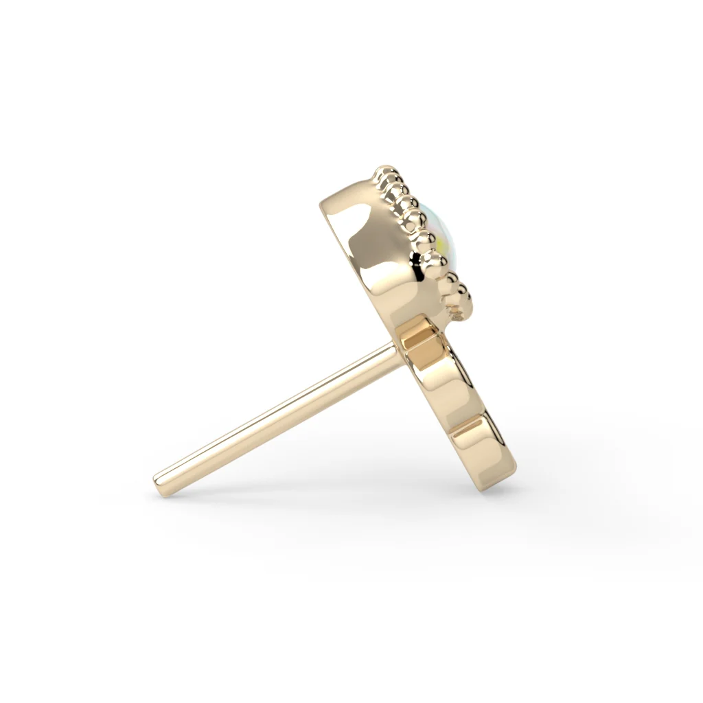 The Oculus Divina charm features a 4mm x 2mm Marquise Cabochon stone, accented by a trinity of bezel set genuine 1mm VS1 diamonds. Beautiful French Millgrain surrounds the Marquise Cabochon stone. This piece is available in the following gemstone combinations: