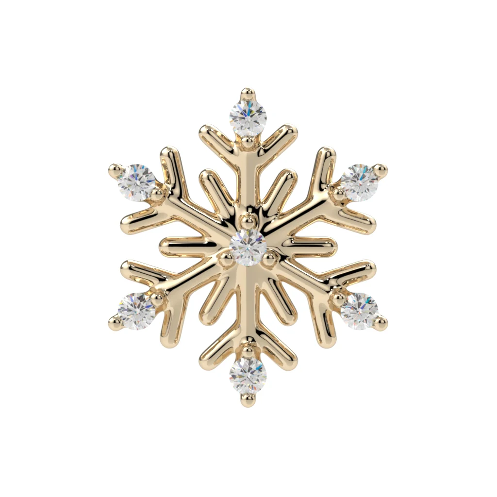 The snowflake charm is 8.6mm in diameter. The gemstones are 1mm in diameter, 0.035 CTW. Choose from genuine SI1 color G diamond, or cubic zirconia. If you would like to change the gemstone for a different stone, enter a note on the item when adding to your order and we will provide a quote.